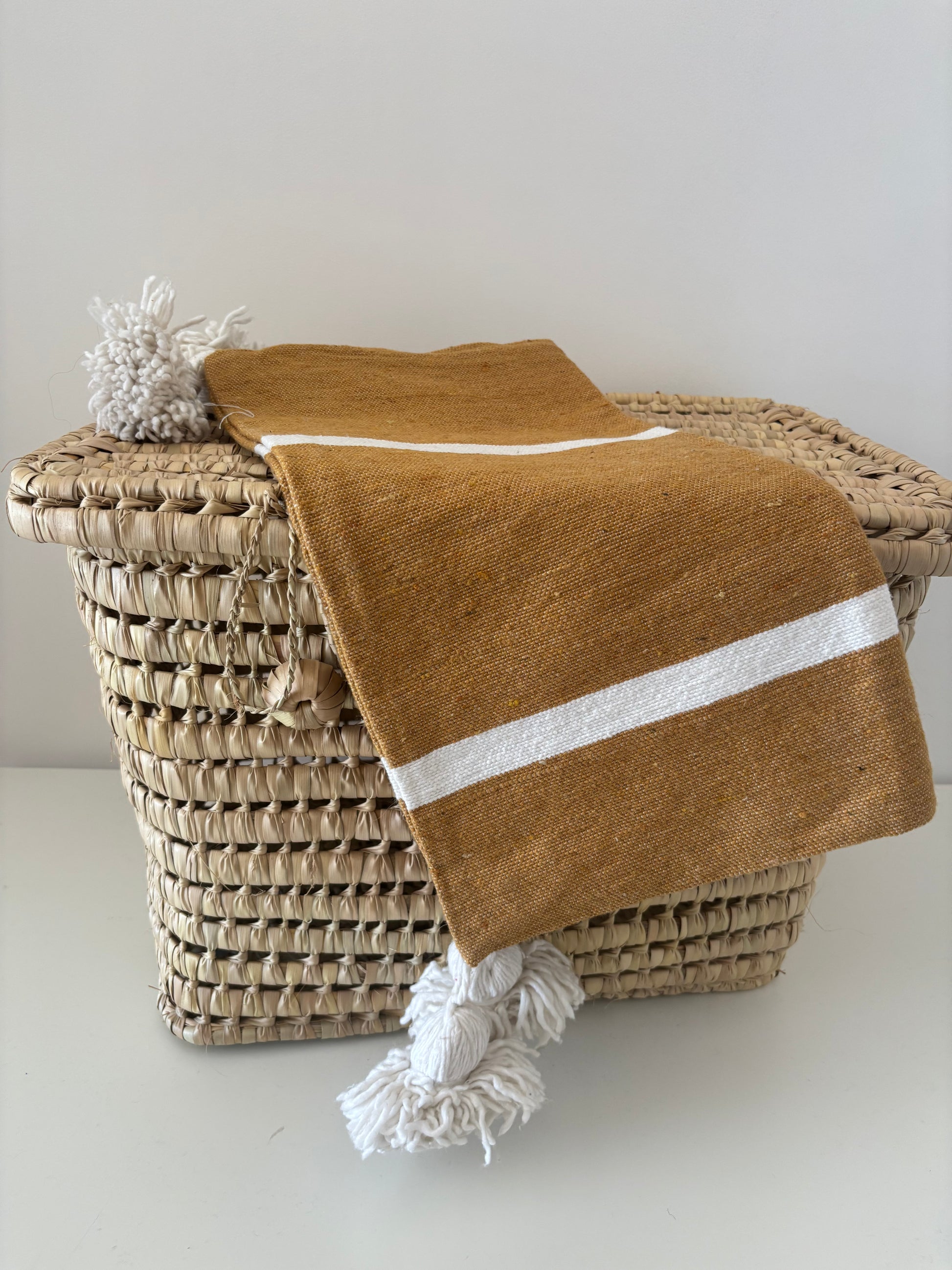 Housse de coussin marocaine en coton authentique, ornée de pompons décoratifs et motif de rayure, entièrement tissée à la main selon des techniques traditionnelles. Cette pièce d'artisanat apporte une touche bohème raffinée à votre décoration d'intérieur tout en préservant un savoir-faire ancestral.