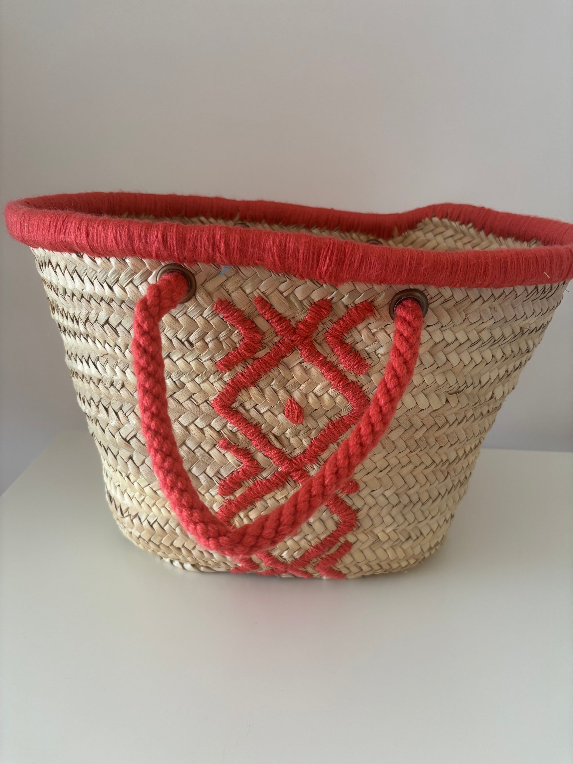 Panier chic de couleur rouge avec broderie.