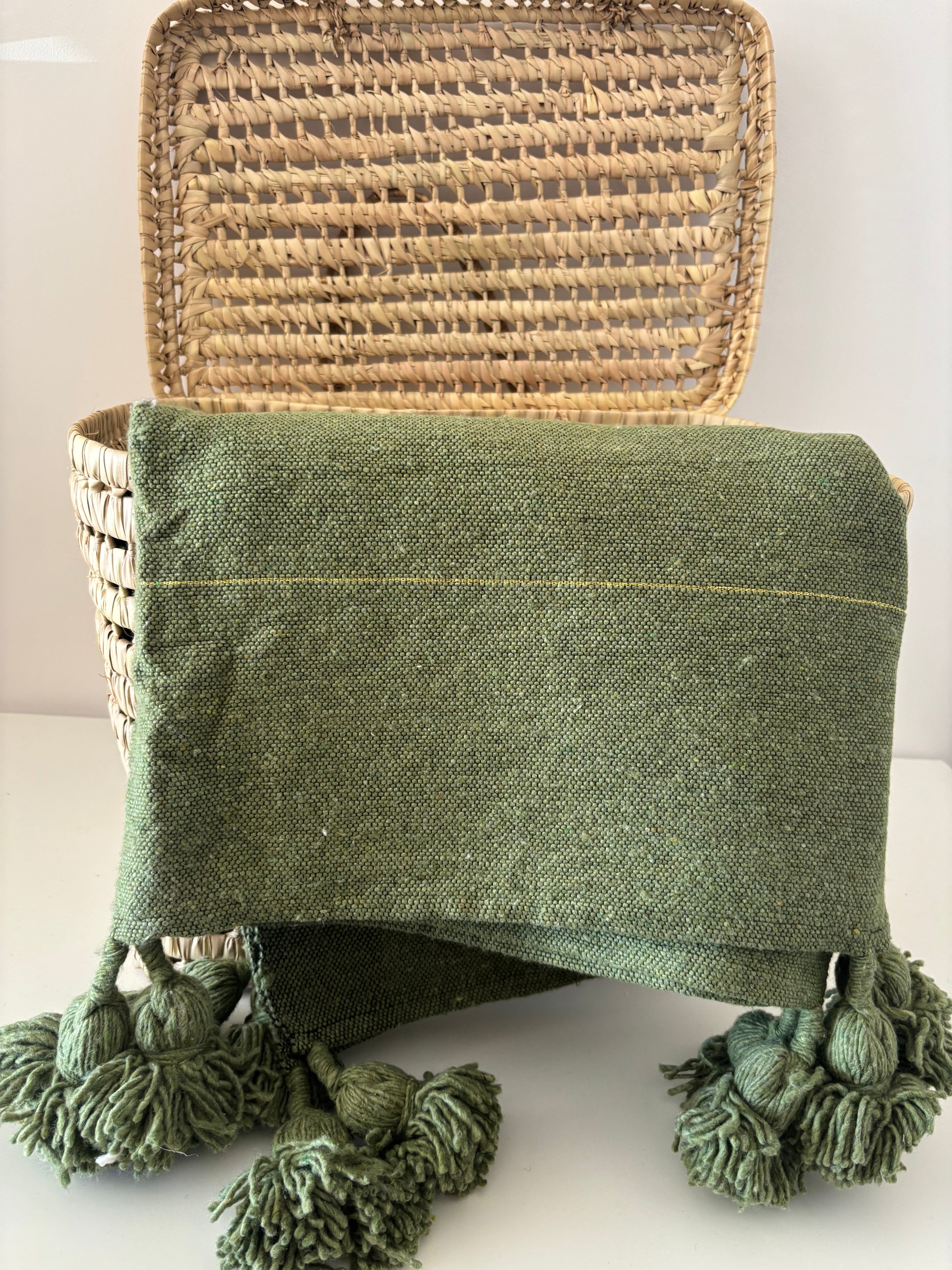Ce plaid à pompons à rayure se distingue par son élégance sobre et sa finition artisanale. Idéal comme jeté de lit ou couverture décorative pour votre canapé, il apporte instantanément chaleur et caractère à votre intérieur.